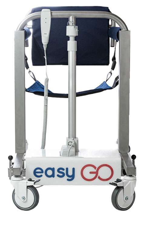 Η easyGO είναι μια πολυχρηστική  τροχήλατη καρέκλα – γερανάκι  με μοναδικό σύστημα ανύψωσης των ασθενών. Η easyGO διατίθεται με ηλεκτρικό μηχανισμό και επαναφορτιζόμενη μπαταρία. Σας επιτρέπει να ανασηκώνετε τον ασθενή με δύο μόνο κινήσεις και να τον τοποθετείτε στο κρεβάτι, το αναπηρικό αμαξίδιο, την τουαλέτα, το αυτοκίνητο ή οποιοδήποτε άλλο σημείο επιθυμείτε.