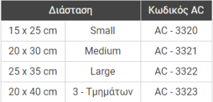 Διατίθενται σε τέσσερις (4) διαστάσεις προκειμένου ο χρήστης να επιλέξει αυτό που ταιριάζει στην περίπτωση του.
