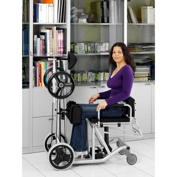 Ο ορθοστάτης EE είναι ηλεκτροκίνητος μηχανισμός ανύψωσης με χειροκίνητους τροχoύς, που επιτρέπει στο χρήστη να οδηγεί και να διατηρεί την όρθια θέση καθώς κινείται ελεύθερα.