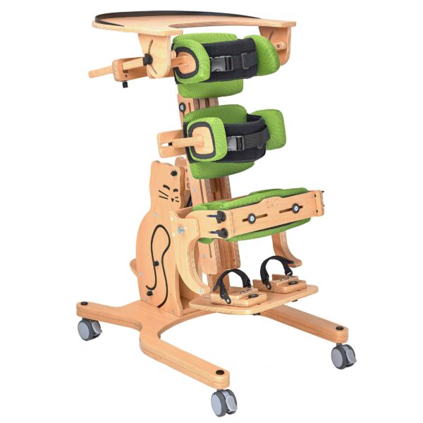 Μπορούμε εύκολα να αλλάξουμε τη θέση ενός παιδιού από ξαπλωτή σε όρθια. Το σύστημα των πλαϊνών στηριγμάτων και ζωνών, προστατεύει το παιδί και του δίνει τη δυνατότητα χρήσης για γεύματα, διασκέδαση και μάθηση στην όρθια θέση. Προσφέρει την απόλυτα σωστή θέση στο παιδί, συμβάλλοντας καθοριστικά στην σωστή του σωματική ανάπτυξη και αποτελεί την καταλληλότερη επιλογή για τους γονείς. To CAT II INVENTO είναι εξ’ ολοκλήρου κατασκευασμένο από οικολογικά υλικά και ζωγραφισμένο στο χέρι.