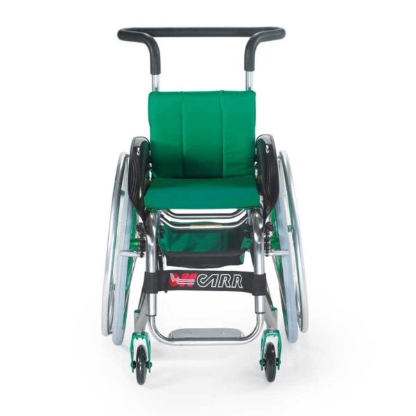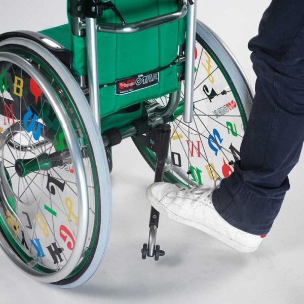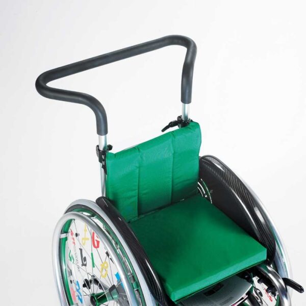 Το παιδικό καροτσάκι QUASAR KID παρέχεται ως στάνταρ με ρυθμιζόμενες σε ύψος χειρολαβές για το συνοδό και με anti-tip.