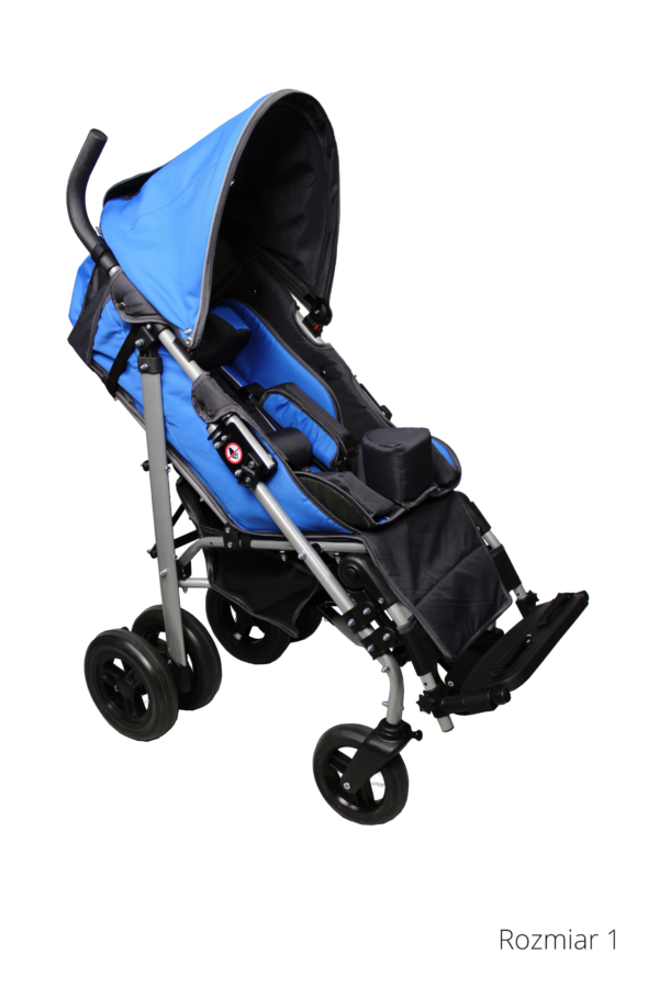 - abduction wedge, front safety barrier covered with fabric and 5-point belt
